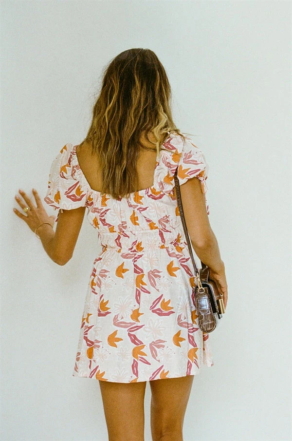 The perfect little dress to take you from day-to-night! The Havana Dress is made from a high quality viscose linen fabric with our exclusive dusty leaf floral print. It features short puff sleeves with draw tie details, draw neckline, elastic panels across waist and a flouncy skirt. Pair with the Zita Strappy Sandals! Designed exclusively by Sabo.