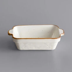 Acopa Keystone 15 Oz. Vanilla Bean Stoneware Rectangular Baker / Casserole Dish – 16/Case